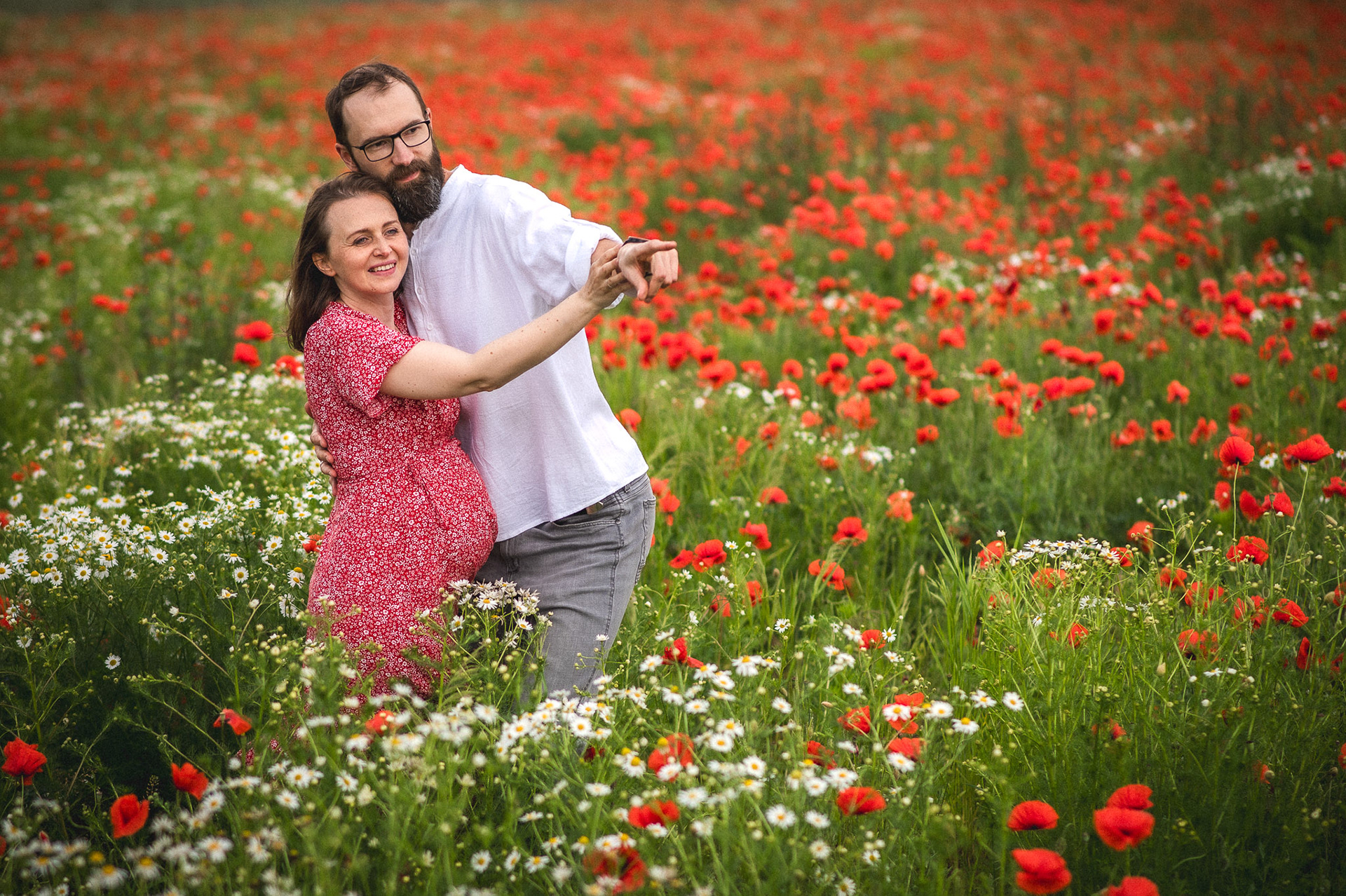 Nie do końca byliśmy przekonani czy sesja zakończy się powodzeniem, gdyż pogoda tego dnia była bardzo dynamiczna. Nie dość, że słońce i chmury przeplatały się na zmianę, to po wyjeździe z miasta zaczął padać deszcz. Na szczęście aura potraktowała nas łaskawie. Gdy przyjechaliśmy na miejsce, nie mogliśmy nacieszyć oczu od widoku tych pięknych, intensywnie czerwonych kwiatów. Zresztą, zobaczcie sami jak było!